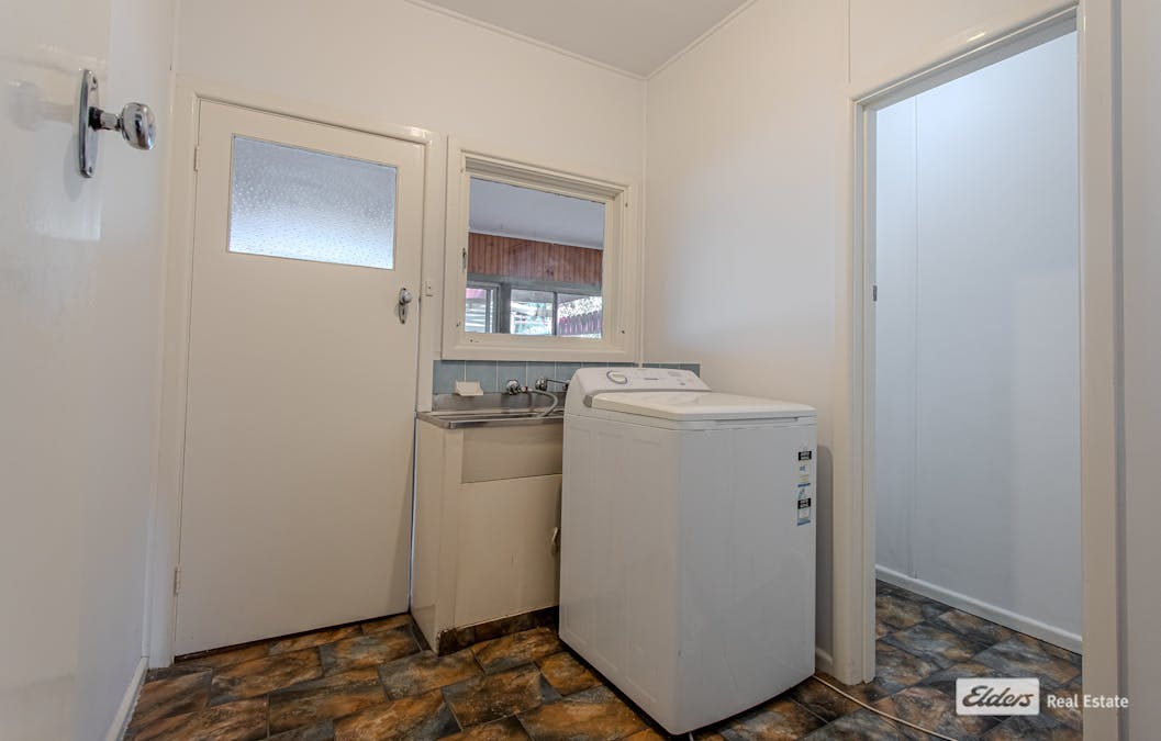 All three bedrooms are generously sized and carpeted, providing comfortable retreats for the whole family. A neat central bathroom includes a shower-over-bath and vanity, while the laundry offers a stainless steel trough, outdoor access, and separate toilet.