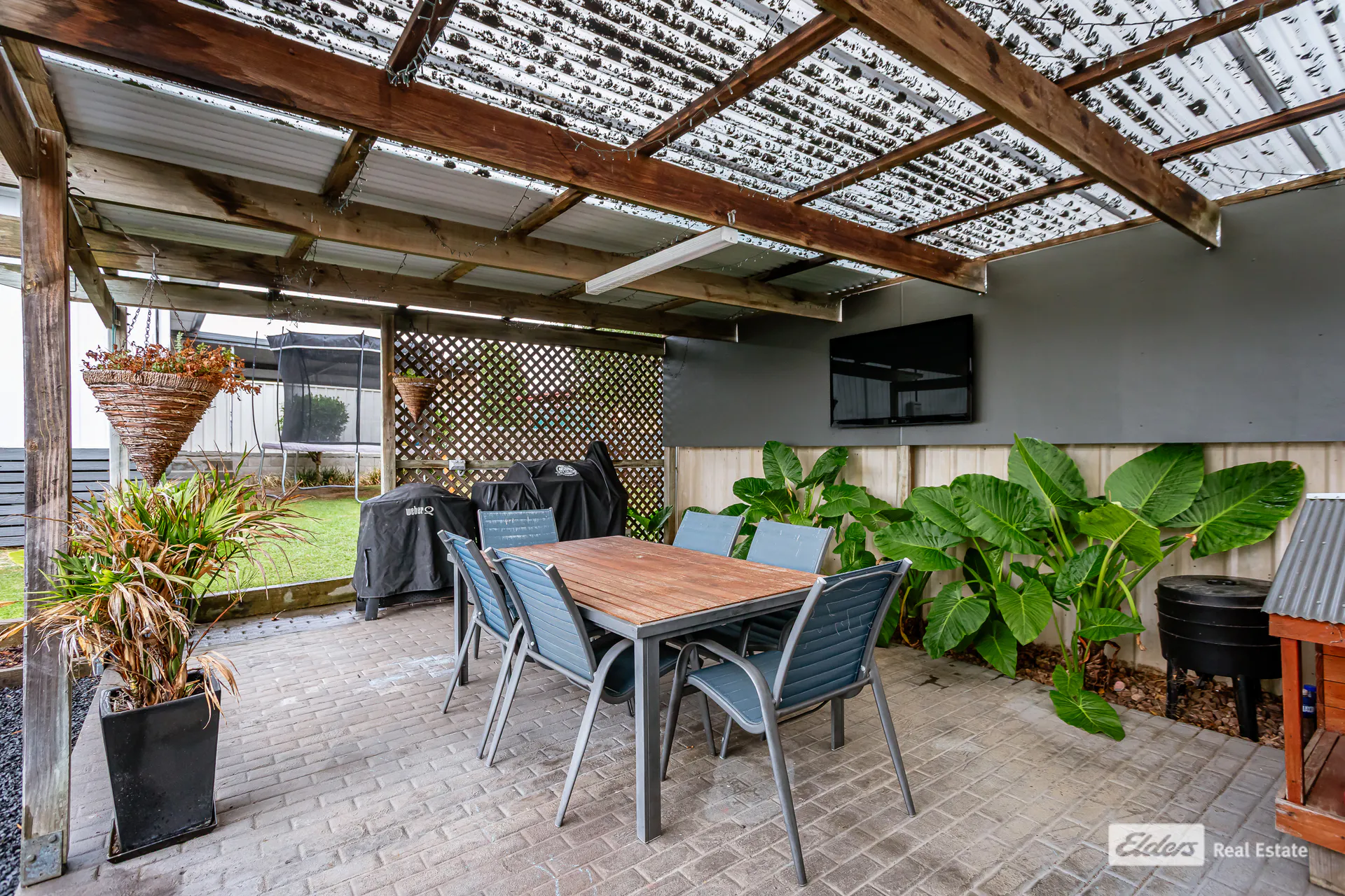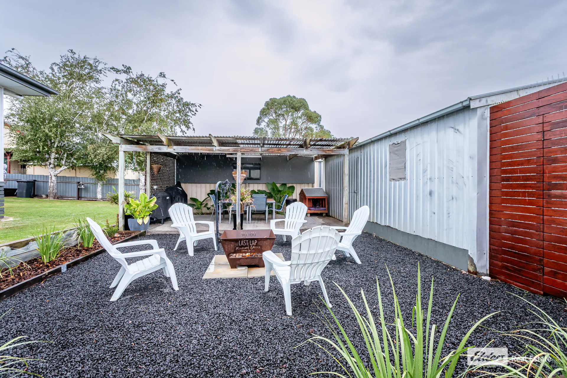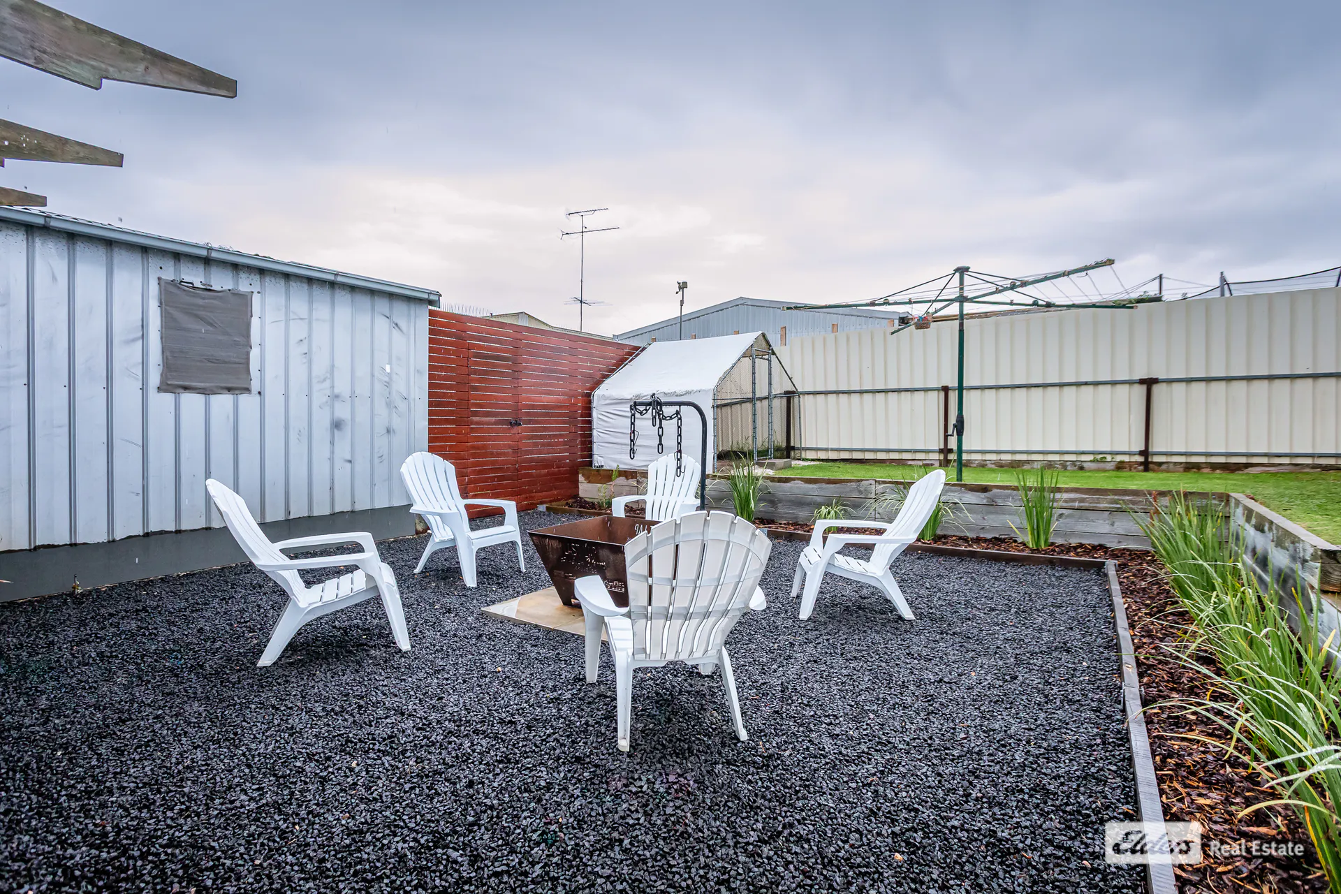 Out the back is for family time, with a covered outdoor entertaining area ideal for a barbecue, fire pit or watching the footy on weekends, as well as the man cave if the elements are against you.